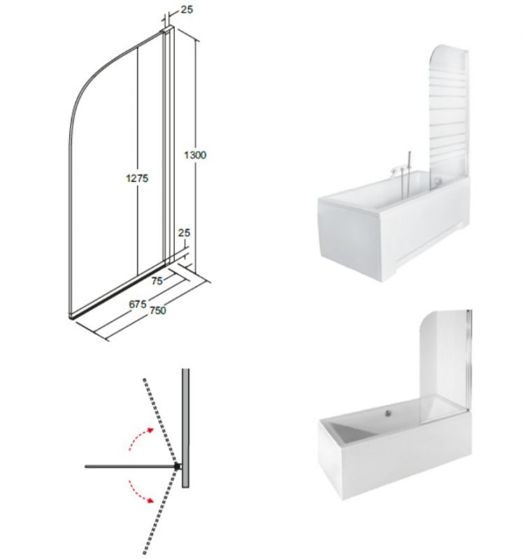 Pööratav mudel: parempoolne / vasakpoolne kokkupanek. Turvaline karastatud klaas ja alumiinium, metalldetailide läikiv kroomitud viimistlus. Sobivad vannid: mis tahes ristkülikukujuline vann pikkusega 100 cm ja rohkem (vann ei kuulu duššiekraani hinna hulka). Saadaval on lai valik sobivaid kraanide ja dušikomplektide seeriaid.