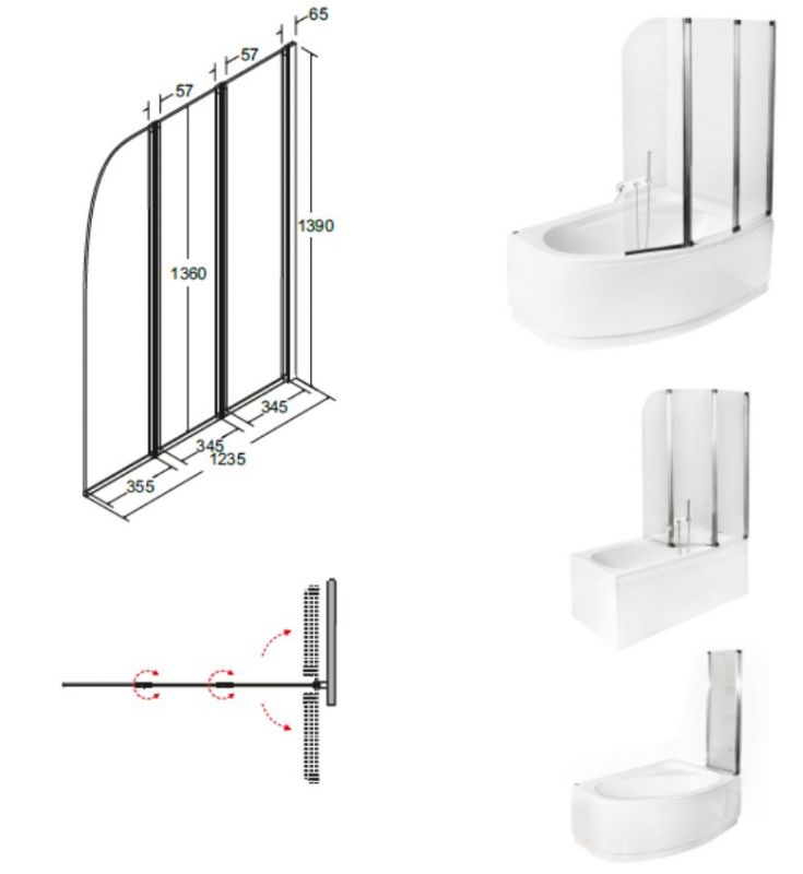 Pööratav mudel: parempoolne / vasakpoolne kokkupanek. Turvaline karastatud klaas ja alumiinium, metalldetailide läikiv kroomitud viimistlus. Sobivad vannid: mis tahes ristkülikukujuline vann pikkusega 130 cm ja üle selle & valitud asümmeetrilised vannid (vann ei kuulu duššisildi hinna hulka). Saadaval on lai valik sobivaid kraanide ja dušikomplektide seeriat.
