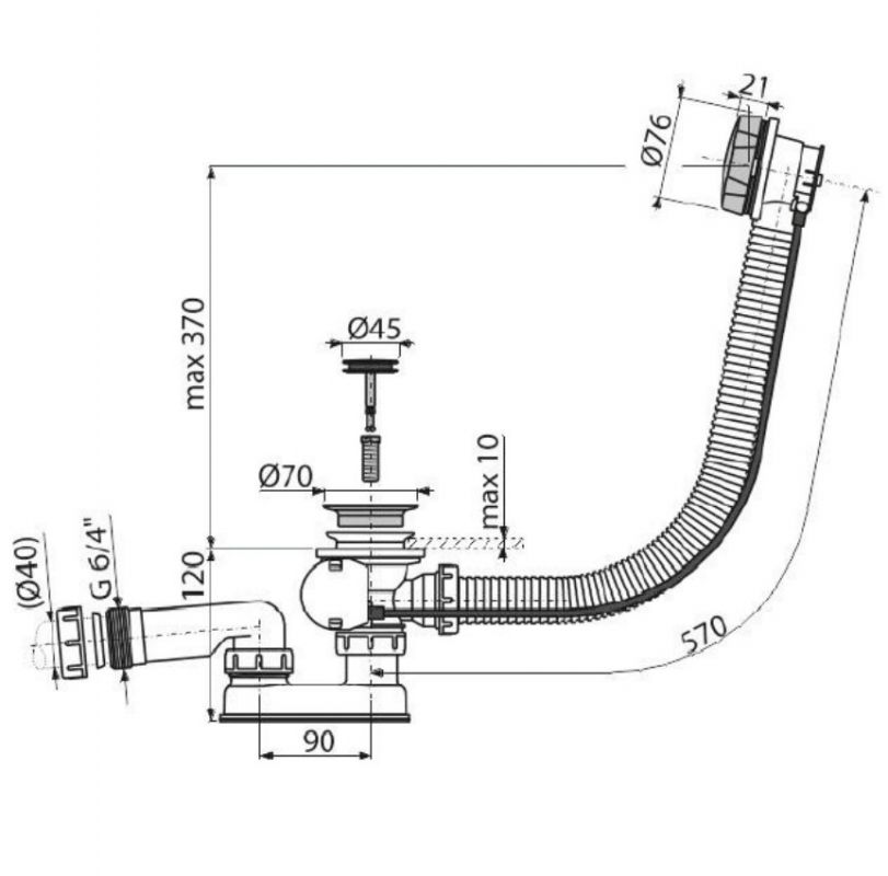 - Komplektis: ülevooluga sifooni korpus, juhtpea metallpistikule, metallist väljalaskevõrk, polüpropüleenist sifoon - temperatuuri ja kemikaalide suhtes vastupidav, paigalduskomplekt, vormitud tihendusvahend.