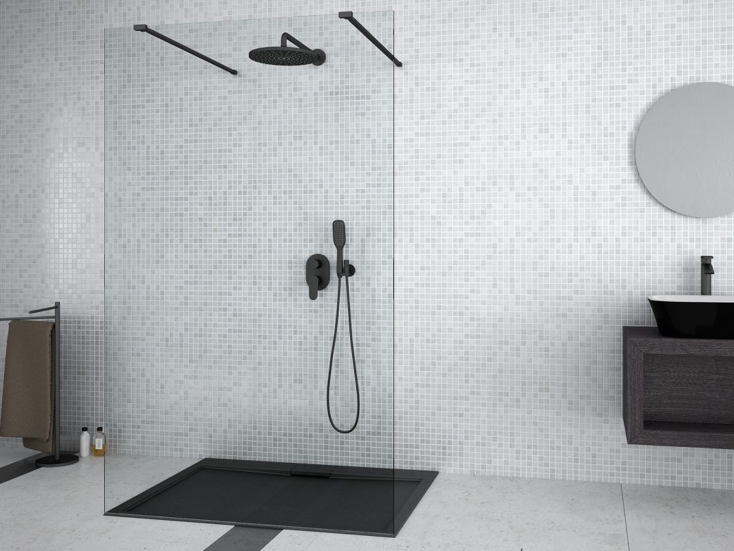 Turvaline karastatud klaas 8 mm ja alumiinium, metalldetailide matt must viimistlus. Konsoolide maksimaalne pikkus - 120 cm, seda saab lõigata mõõtu järgi. Besco ProClean kate, standardvarustuses. Külgpaneel - üks või kaks - on valikuline ja müüakse eraldi, lisatasu eest. Sobivad dušialused: Axim UltraSlim, Nox UltraSlim, Alpina SlimLine, Acro UltraSlim, Aquarius SlimLine, Vexo, Vexo Black. Sobivad lineaarsed dušikraanid: kogu Virgo seeria. Saadaval on lai valik sobivaid kraanide ja dušikomplektide seeriaid.