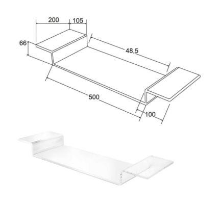 Läbipaistev akrüülvanniriiul, kaasaegne disain, funktsionaalne, veekindel. Saadaval 2 suurust.
