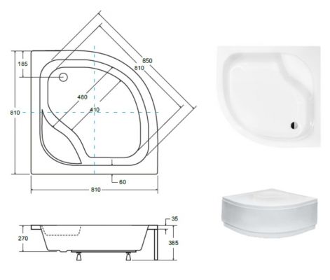 Dušialuse jalad / tasandussüsteem kuulub dušialuse hinna sisse. Paneelikomplekt sisaldab ühte esipaneeli. Lisatasu eest on dušialus saadaval ka Besco BeSafe kattega. Valge läikiv viimistlus.