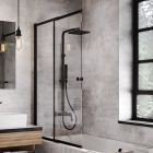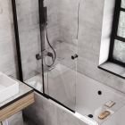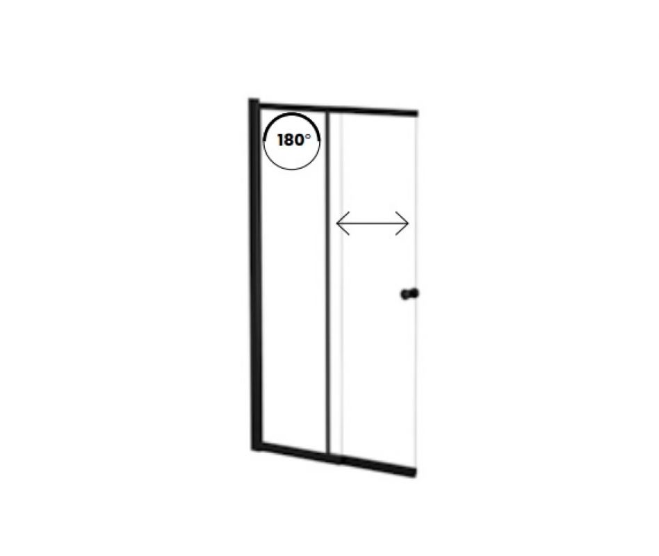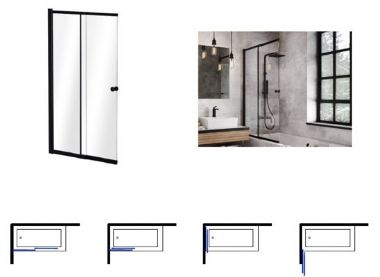 Pööratav mudel: parempoolne / vasakpoolne kokkupanek. Turvaline karastatud klaas ja alumiinium, metalldetailide matt must viimistlus. Praktiline ja mugav kahepoolne käepide tsinksulamist. Seinaekraan liikuv vasakule/paremale. Sobivad vannid: iga ristkülikukujuline vann pikkusega 100 cm ja rohkem (vann ei kuulu duššiekraani hinna hulka). Saadaval on lai valik sobivaid kraanide ja dušikomplektide seeriaid.