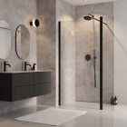 Turvaline karastatud klaas 6 mm ja alumiinium, metalldetailide matt must viimistlus. Pööratav mudel: parempoolne / vasakpoolne kokkupanek. Kanduri maksimaalne pikkus - 120 cm, seda saab lõigata mõõtu järgi. Besco ProClean kate, standardvarustuses. Flex Black külgpaneel koos kolonniga on valikuline ja müüakse eraldi, lisatasu eest. Sobivad dušialused: Axim UltraSlim, Nox UltraSlim, Alpina SlimLine, Acro UltraSlim, Aquarius SlimLine, Vexo, Vexo Black. Sobivad lineaarsed dušikraanid: kogu Virgo seeria. Saadaval on lai valik sobivaid kraanide ja dušikomplektide seeriaid.