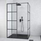 Turvaline karastatud klaas 8 mm ja alumiinium, metalldetailide matt must viimistlus. Pööratav mudel: parempoolne / vasakpoolne kokkupanek. Ruudustik klaasil. Must alumiiniumist raam klaasi ümber. Besco ProClean kate, standardvarustuses. Sobivad dušialused: Axim UltraSlim, Nox UltraSlim, Alpina SlimLine, Vexo, Vexo Black. Sobivad lineaarsed dušikraanid: kogu Virgo seeria. Saadaval on lai valik sobivaid kraanide ja dušikomplektide seeriaid.