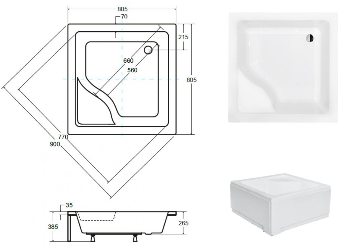 Dušialuse jalad / tasandussüsteem kuulub dušialuse hinna sisse. Paneelikomplekt sisaldab kahte paneeli. Lisatasu eest on dušialus saadaval ka Besco BeSafe kattega. Valge läikiv viimistlus.