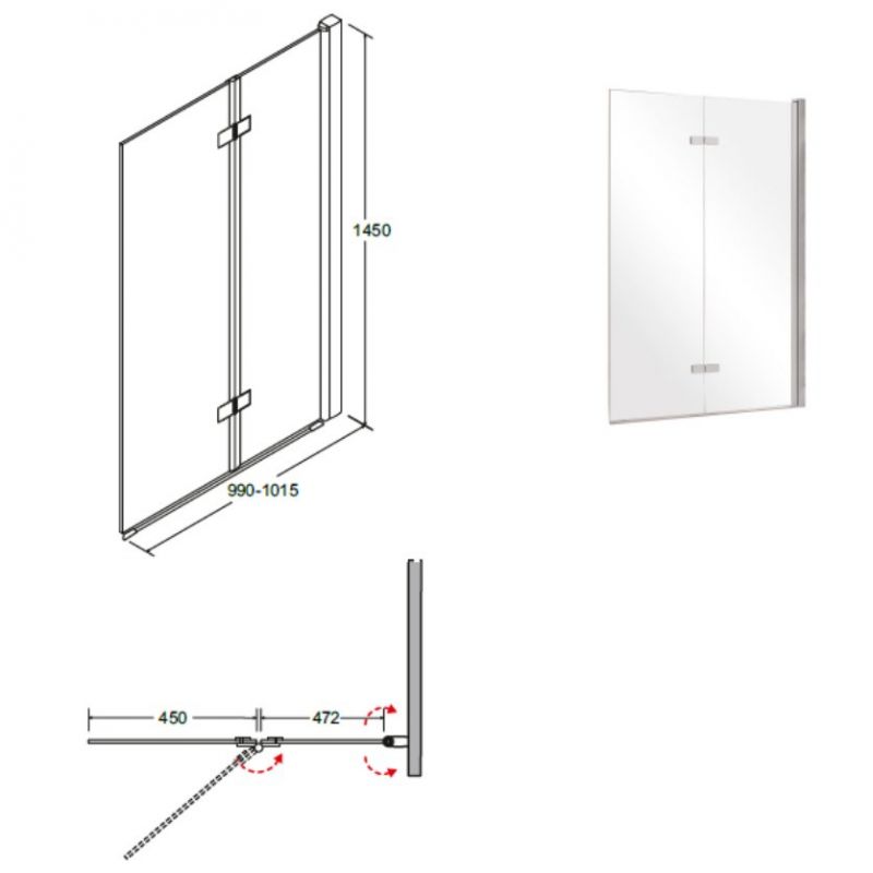 Pööratav mudel: parempoolne / vasakpoolne kokkupanek. Turvaline karastatud klaas ja alumiinium, metalldetailide läikiv kroomitud viimistlus. Sobivad vannid: mis tahes ristkülikukujuline vann pikkusega 110 cm ja rohkem (vann ei kuulu duššiekraani hinna hulka). Saadaval on lai valik sobivaid kraanide ja dušikomplektide seeriaid.
