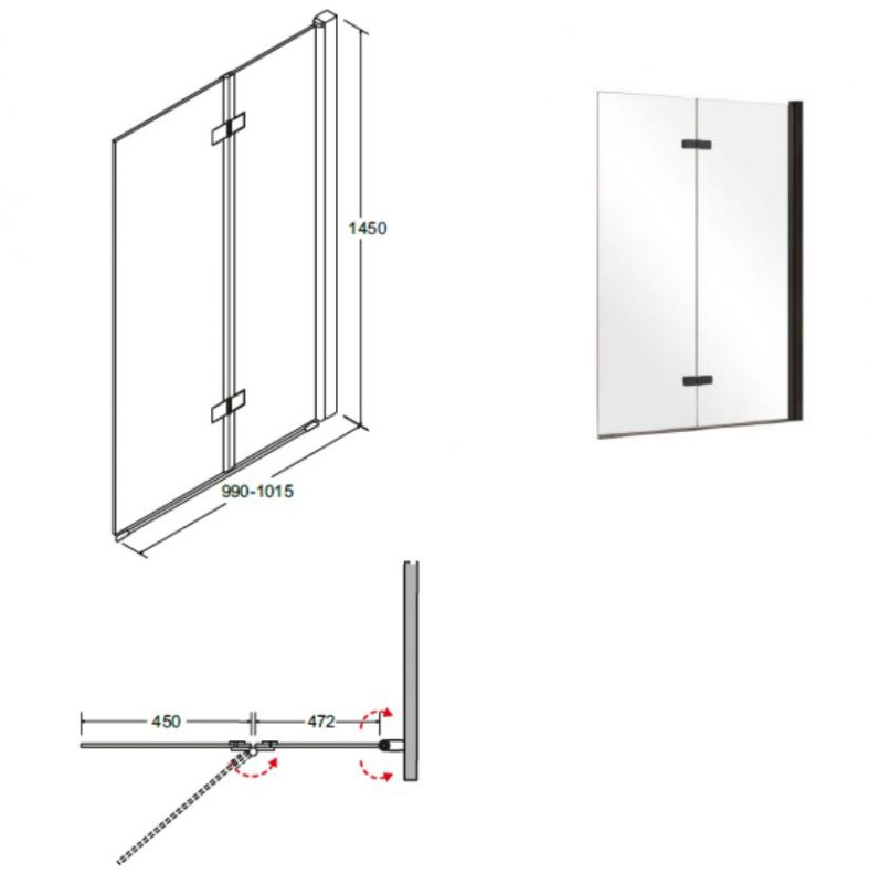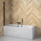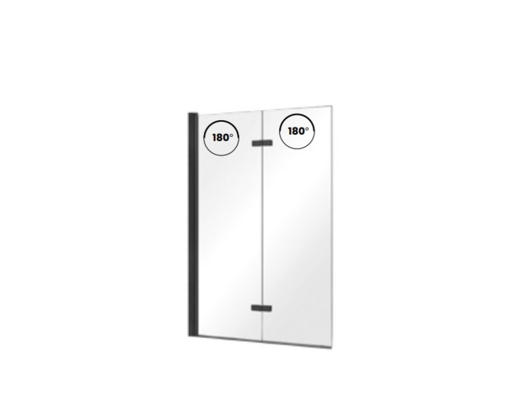 Pööratav mudel: parempoolne / vasakpoolne kokkupanek. Turvaline karastatud klaas ja alumiinium, metalldetailide matt must viimistlus. Sobivad vannid: mis tahes ristkülikukujuline vann pikkusega 110 cm ja rohkem (vann ei kuulu duššiekraani hinna hulka). Saadaval on lai valik sobivaid kraanide ja dušikomplektide seeriaid.