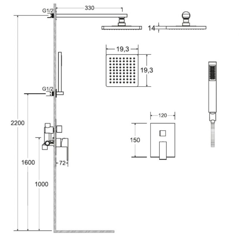 - Reguleeritava kõrgusega üleriigiline dušš