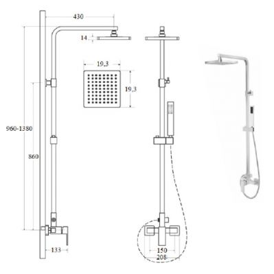 - Reguleeritava kõrgusega üleriigiline dušš