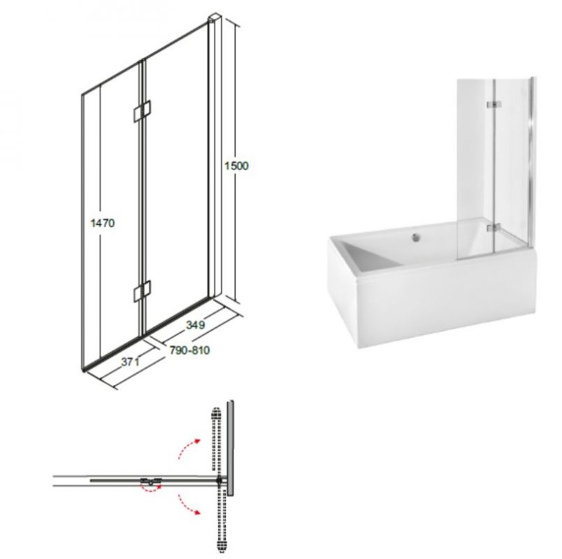 Pööratav mudel: parempoolne / vasakpoolne kokkupanek. Turvaline karastatud klaas ja alumiinium, metalldetailide läikiv kroomitud viimistlus. Sobivad vannid: mis tahes ristkülikukujuline vann pikkusega 100 cm ja rohkem (vann ei kuulu duššiekraani hinna hulka). Saadaval on lai valik sobivaid kraanide ja dušikomplektide seeriaid.