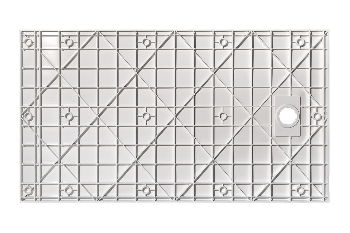 UltraSlim dušialus, SMC, mattvalge viimistlus, mille pinnal on õrn struktuur, mis imiteerib looduslikku kivi. Dušialuse hinna sees on sobiva äravoolukaane ja ülapuhastusfunktsiooniga sifooni komplekt. Dušialuse vorm võimaldab kas põrandale või põrandatasandile paigaldamist, mis võimaldab lävepakuta sisenemist duširuumi. Dušialust saab lõigata mõõtude järgi.