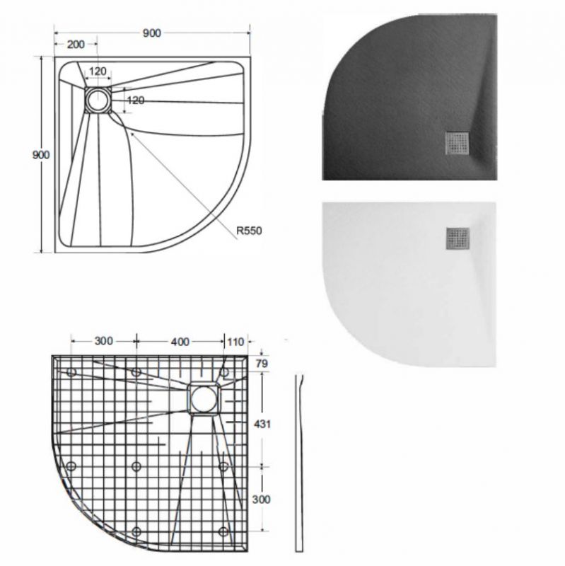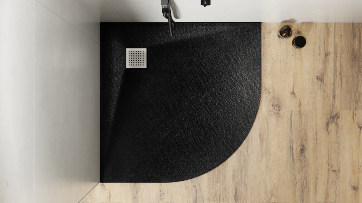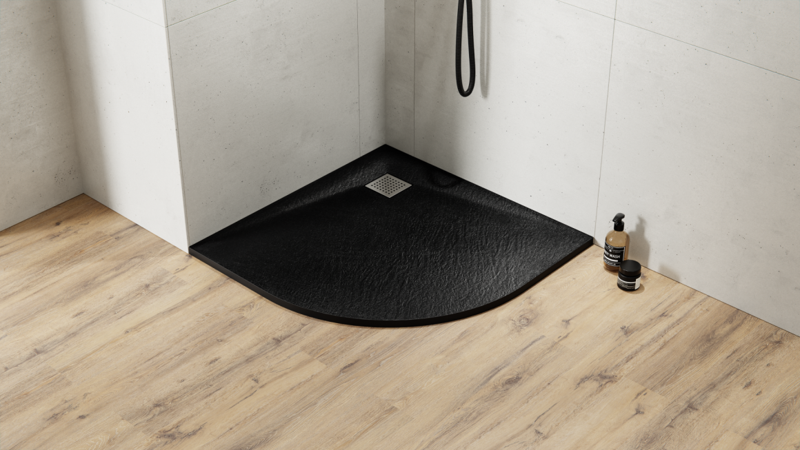 UltraSlim dušialus, SMC, matt must viimistlus, mille pinnal on õrn struktuur, mis imiteerib looduslikku kivi. Dušialuse hinna sees on sobiva äravoolukaane ja ülapuhastusfunktsiooniga sifooni komplekt. Dušialuse vorm võimaldab kas põrandale või põrandatasandile paigaldamist, mis võimaldab lävepakuta sisenemist duširuumi. Dušialust saab lõigata mõõtude järgi.