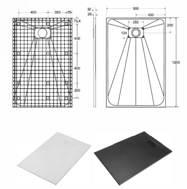 UltraSlim dušialus, SMC, matt must viimistlus, mille pinnal on õrn struktuur, mis imiteerib looduslikku kivi. Dušialuse hinna sees on sobiva äravoolukaane ja ülapuhastusfunktsiooniga sifooni komplekt. Dušialuse vorm võimaldab kas põrandale või põrandatasandile paigaldamist, mis võimaldab lävepakuta sisenemist duširuumi. Dušialust saab lõigata mõõtude järgi.