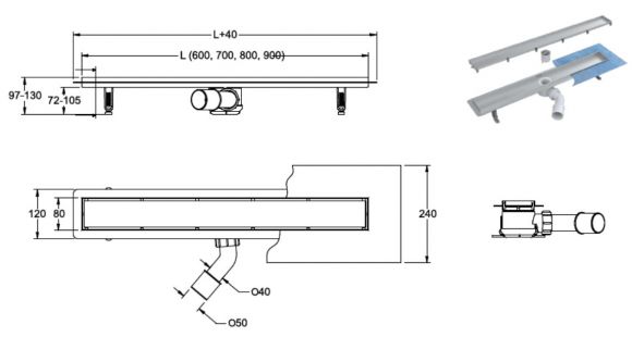 Lineaarne dušikraanikomplekt on komplektne ja monteerimisvalmis, see sisaldab: äravoolutoru koos sifoni ja paigaldusjalgadega, rest ja tihendusmansett. 8 cm laiune võre. Paigalduskõrgus - algab 72 mm äärest. 2-in-1 duo tüüpi võre, harjatud kroomitud viimistlusega või paigaldamiseks keraamiliste plaatidega. 360˚ sifoon ülemise puhastusfunktsiooniga ja kuni 56 l/min veemahuga. Ø 50 mm ühendus (ilma vähendamiseta 40 mm). Materjal: roostevaba teras, ABS.