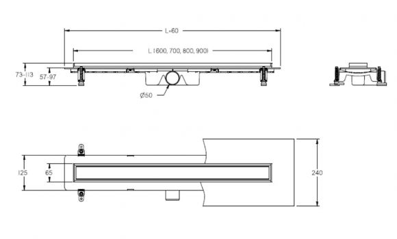 Lineaarne dušikraanikomplekt on komplektne ja monteerimisvalmis, see sisaldab: äravoolutoru koos sifoni ja paigaldusjalgadega, rest ja tihendusmansett. 6,5 cm laiune, õhuke restoraniosa. Madal paigalduskõrgus - algab 57 mm äärest. 2-in-1 duo tüüpi võre, harjatud kroomitud viimistlusega või paigaldamiseks keraamiliste plaatidega. Ø 50 mm ühendus (ilma vähendamiseta 40 mm). Materjal: ABS, roostevaba teras.