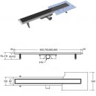 Lineaarne dušikraanikomplekt on komplektne ja monteerimisvalmis, see sisaldab: äravoolutoru koos sifoni ja paigaldusjalgadega, rest ja tihendusmansett. 6 cm laiune, klaasist valmistatud õhuke võre. Madal paigalduskõrgus - algab 62 mm äärest. Ø 50 mm ühendus (ilma vähenduseta 40 mm). Materjal: roostevaba teras, klaas, ABS.