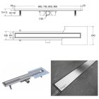 Lineaarne dušikraanikomplekt on komplektne ja monteerimisvalmis, see sisaldab: äravoolutoru koos sifoni ja paigaldusjalgadega, rest ja tihendusmansett. Õhuke võre, 6 cm lai. Madal paigalduskõrgus - algab 62 mm äärest. 2-in-1 duo tüüpi võre, harjatud kroomitud viimistlusega või paigaldamiseks keraamiliste plaatidega. Ø 50 mm ühendus (ilma vähendamiseta 40 mm). Materjal: roostevaba teras, ABS.