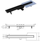 Lineaarne dušikraanikomplekt on komplektne ja monteerimisvalmis, see sisaldab: äravoolutoru koos sifoni ja paigaldusjalgadega, rest ja tihendusmansett - kõik osad on mustad. Õhuke võre, 6 cm lai. Madal paigalduskõrgus - algab 62 mm äärest. 2-in-1 duo tüüpi võre, matt must viimistlus või paigaldamiseks keraamiliste plaatidega. Sifoon mustas värvitoonis ülemise puhastusfunktsiooniga ja kuni 56 l/min veemahuga. Ø 50 mm ühendus (ilma vähenduseta 40 mm). Materjal: roostevaba teras, ABS.