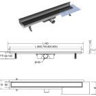 Lineaarne dušikraanikomplekt on komplektne ja monteerimisvalmis, see sisaldab: äravoolutoru koos sifoni ja paigaldusjalgadega, rest ja tihendusmansett. 6 cm laiune, klaasist valmistatud õhuke võre. Madal paigalduskõrgus - algab 62 mm äärest. Sifoon ülemise puhastusfunktsiooniga ja kuni 56 l/min veemahuga. Ø 50 mm ühendus (ilma vähendamiseta 40 mm). Drenaaž on ette nähtud seinale paigaldamiseks. Materjal: roostevaba teras, klaas, ABS.