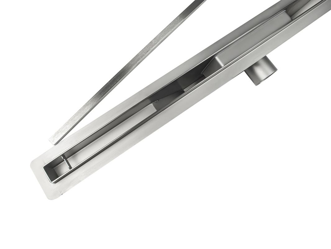 Lineaarne dušikraanikomplekt on komplektne ja monteerimisvalmis, see sisaldab: äravoolutoru koos sifoni ja paigaldusjalgadega, rest ja tihendusmansett. Ülimalt õhuke, 3 cm lai. Paigalduskõrgus - algab 75 mm äärest. Massiivne metallvõre, harjatud kroomitud viimistlusega. Integreeritud metallist sifoon ülemise puhastusfunktsiooniga ja kuni 27 l/min veemahuga. Ø 50 mm ühendus (ilma vähendamiseta 40 mm). Materjal: roostevaba teras.