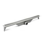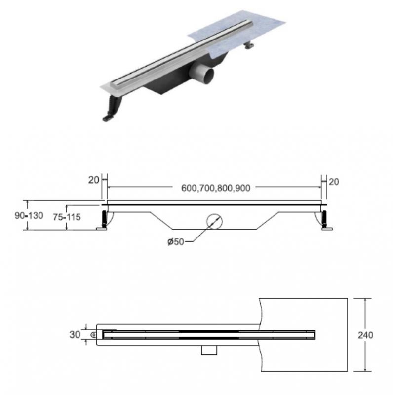Lineaarne dušikraanikomplekt on komplektne ja monteerimisvalmis, see sisaldab: äravoolutoru koos sifoni ja paigaldusjalgadega, rest ja tihendusmansett. Ülimalt õhuke, 3 cm lai. Paigalduskõrgus - algab 75 mm äärest. Massiivne metallvõre, harjatud kroomitud viimistlusega. Integreeritud metallist sifoon ülemise puhastusfunktsiooniga ja kuni 27 l/min veemahuga. Ø 50 mm ühendus (ilma vähendamiseta 40 mm). Materjal: roostevaba teras.