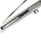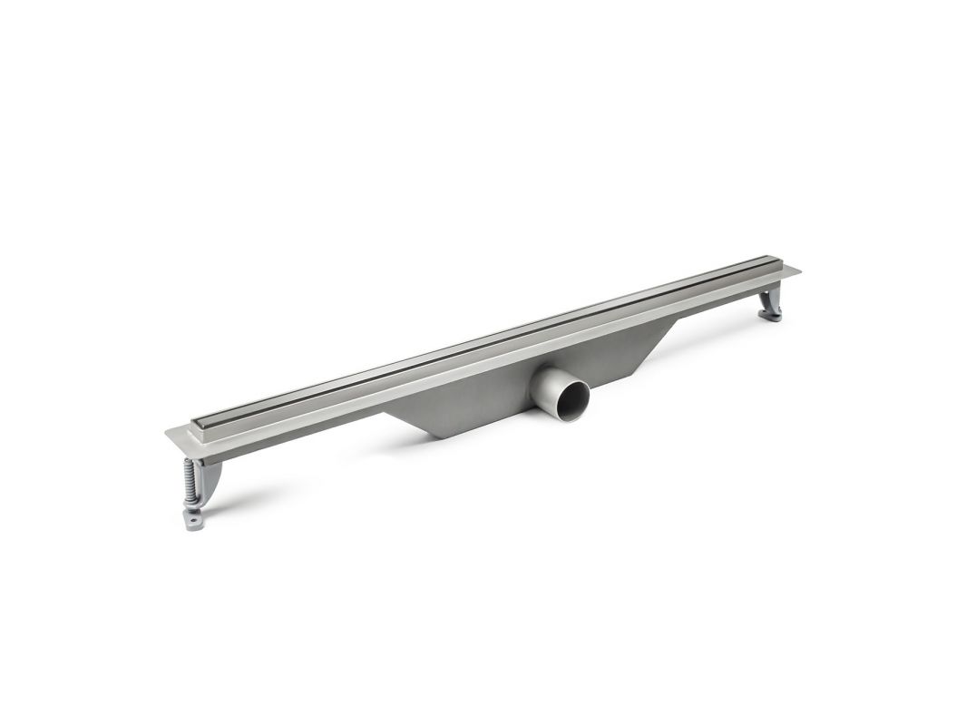 Lineaarne dušikraanikomplekt on komplektne ja monteerimisvalmis, see sisaldab: äravoolutoru koos sifoni ja paigaldusjalgadega, rest ja tihendusmansett. Ülimalt õhuke, 3 cm lai. Paigalduskõrgus - algab 75 mm äärest. Massiivne metallvõre, harjatud kroomitud viimistlusega. Integreeritud metallist sifoon ülemise puhastusfunktsiooniga ja kuni 27 l/min veemahuga. Ø 50 mm ühendus (ilma vähendamiseta 40 mm). Materjal: roostevaba teras.