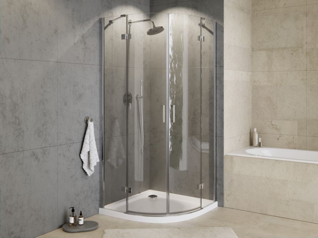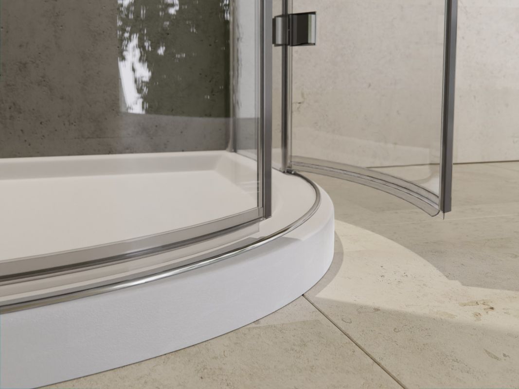 Radiaalne dušikabiin. Parempoolne/vasakpoolne paigaldus. Turvaline karastatud läbipaistev klaas 8 mm, profiilita hingedega uks, metalldetailide läikiv kroomitud viimistlus. Magnetiline tihend ukses. Ukse alt tõstetavad hinged. Lamell, mis juhib vee tagasi kabiini. Sobivad dušialused: Axim UltraSlim, Asco UltraSlim, Aron SlimLine, Vexo, Vexo Black. Saadaval on lai valik sobivaid kraanide ja dušikomplektide seeriaid.