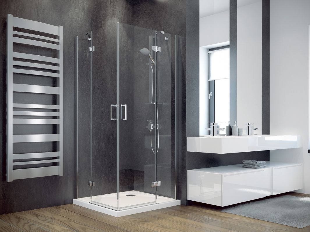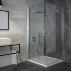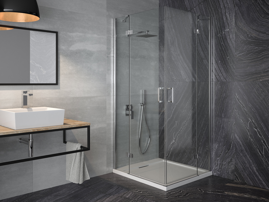 Ruudukujuline dušikabiin. Parempoolne/vasakpoolne kokkupanek. Turvaline karastatud läbipaistev klaas 8 mm, profiilita hingedega uks, metalldetailide läikiv kroomitud viimistlus. Magnetiline tihend ukses. Ukse alumine tõstetav hingedega. Lamell, mis juhib vee tagasi kabiini. Sobivad dušialused: Axim UltraSlim, Acro UltraSlim, Aquarius SlimLine, Vexo, Vexo Black. Saadaval on lai valik sobivaid kraanide ja dušikomplektide seeriaid.