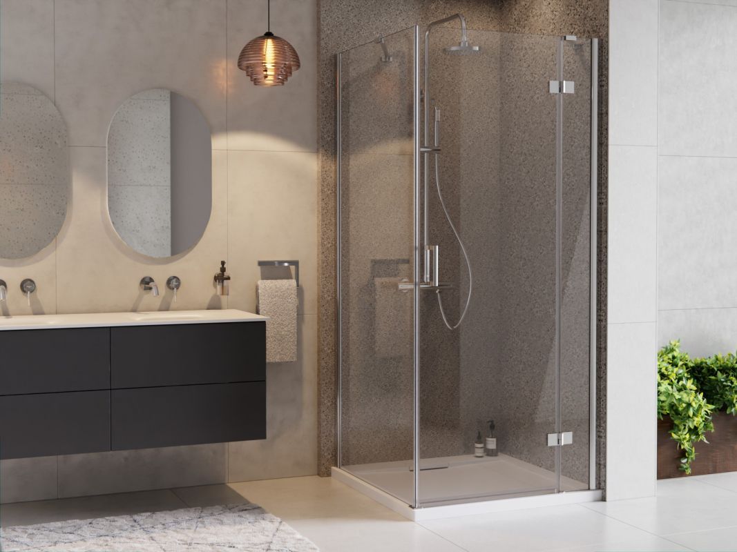 Ruudukujuline dušikabiin. Kabiini parem või vasakpoolne külg. Turvaline karastatud läbipaistev klaas 8 mm, profiilita hingedega uks, metalldetailide läikiv kroomitud viimistlus. Magnetiline tihend ukses. Alumine uksele tõstetavad hinged. Lamell, mis juhib vee tagasi kabiini. sobivad dušikabiinid: Axim UltraSlim, Acro UltraSlim, Aquarius SlimLine, Vexo, Vexo Black Saadaval on lai valik sobivaid kraanide ja dušikomplektide seeriaid.