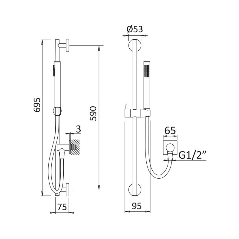 Bruma Breeze Dušikomplekt seinapõlve, EloX dušilifti, Lux vooliku ja Elo käsidušiga - FlowQ, Päikeseloojang Toote kood: 145 575 2SS