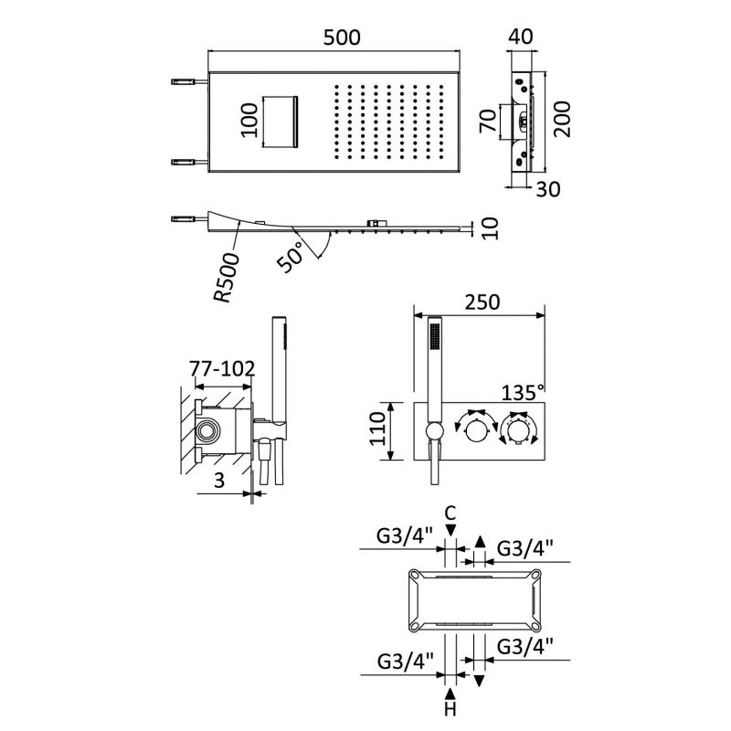 Bruma Breeze Termostaatdušikomplekt Line Cascade üladuši (vihm/kosk) ja käsidušiga - VenusQ, Hommikune udu Toote kood: 187 485 2MM