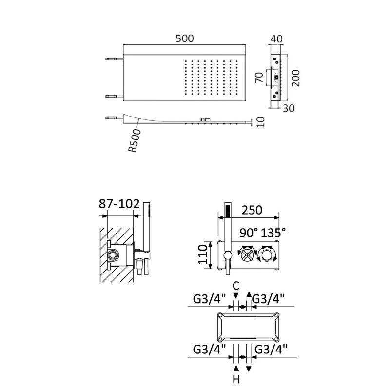 Bruma Hera Termostaatkomplekt Line dušiga (Vihm) ja käsidušiga, Kroom Toote kood: 106 495 0CR