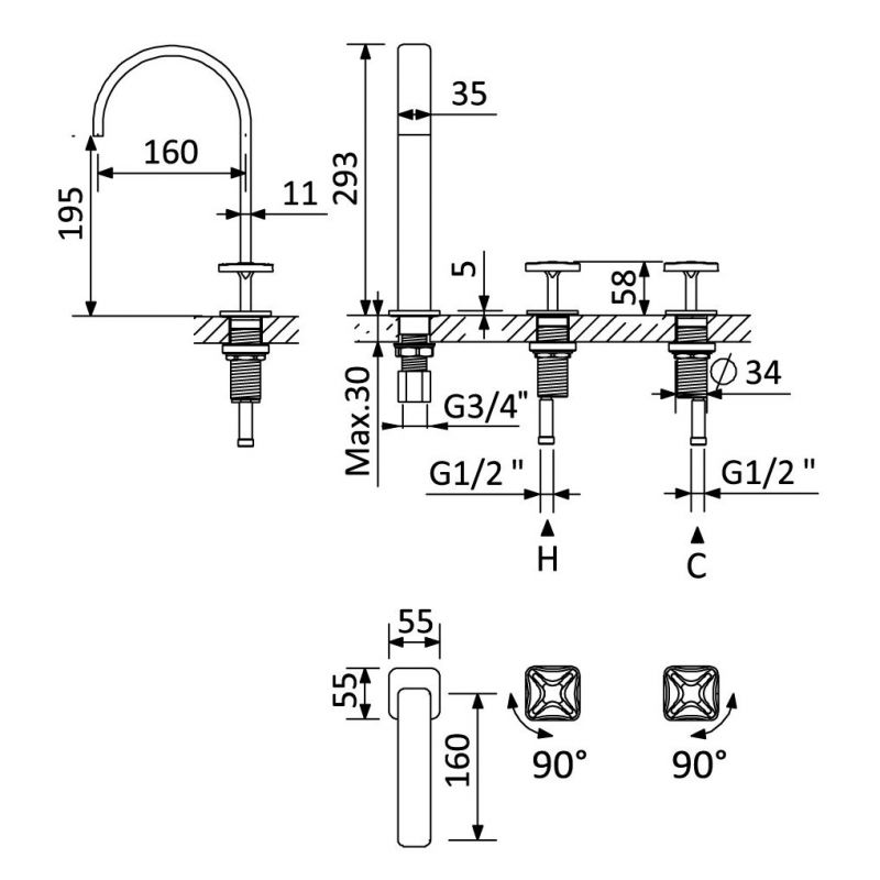 Bruma Navy 3-auguline kraan pesuvalamule, Hommikune udu Toote kood: 1902601MM