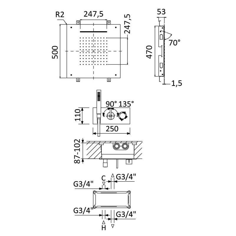 Bruma Royale Termostaatiline dušikomplekt koos peadusšiga (vihm/kaskad) ja käsidušiga Hommikune udu Toote kood: 192 788 1MM