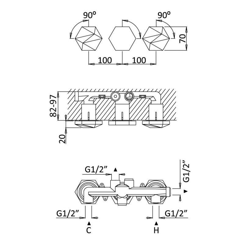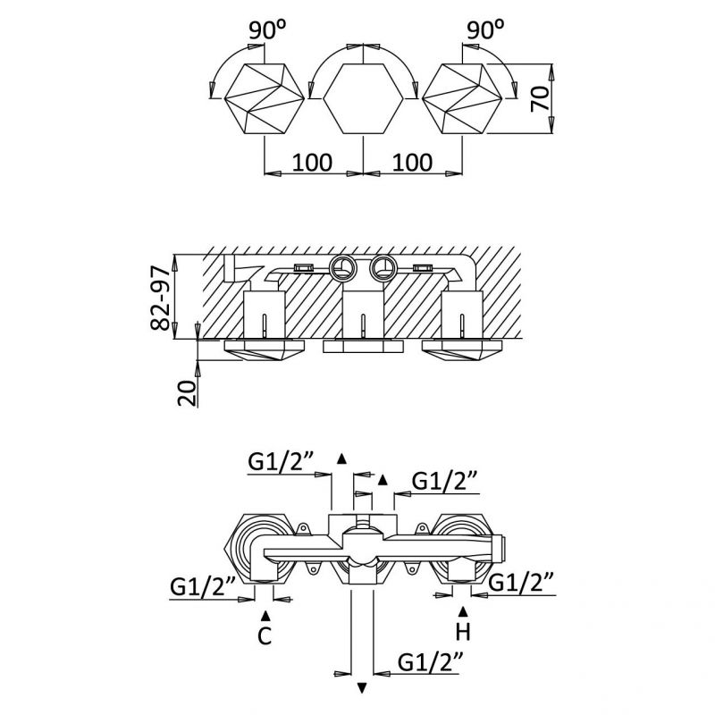 Bruma Utopia 3-auguline sisseehitatud kraan, Päikesetõus Toote kood: 1833100SR