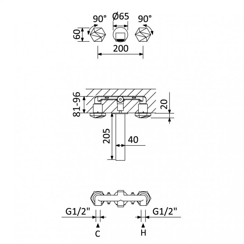 Bruma Utopia 3-auguline sisseehitatud kraan pesuvalamule Puhas valge Toote kood: 1838600PW