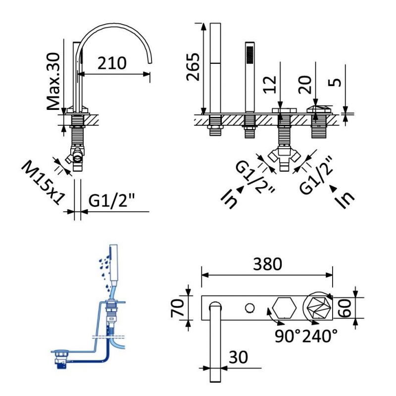 Bruma Utopia Progressiivne vanni- ja dušisegisti integreeritud pritsimiskraaniga, hall Lux-dušivoolik värviliste liitmikega Päikeseloojang