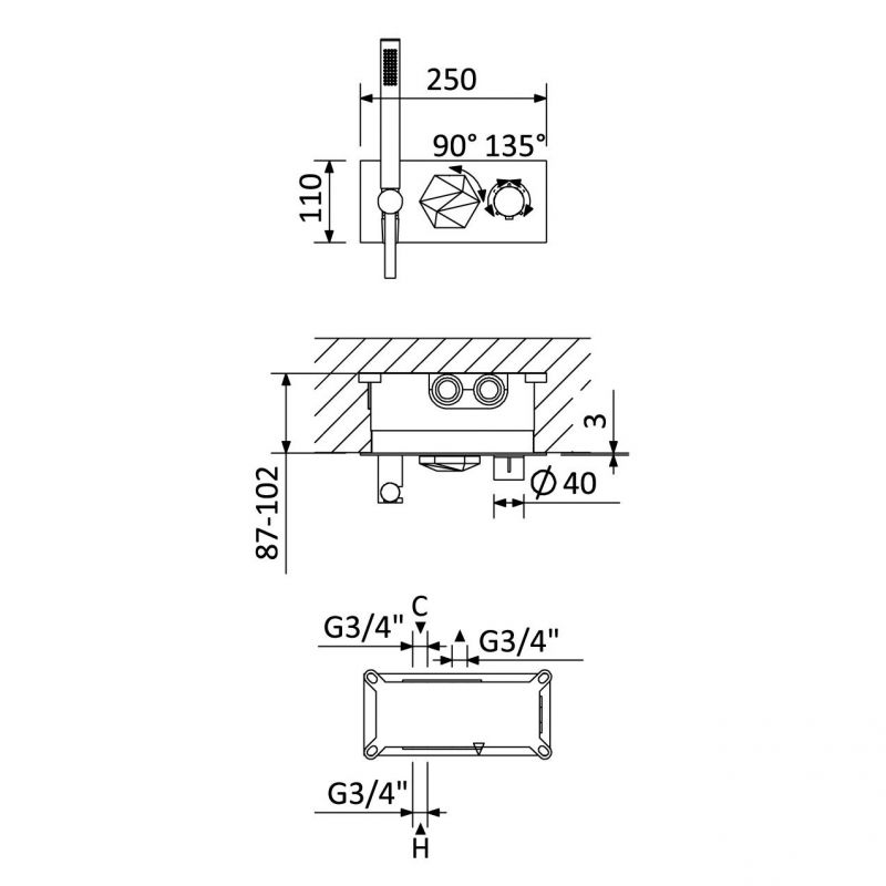 Bruma Utopia Termostaatiline peidetud segisti koos käsidušikomplektiga, Hommikune udu Toote kood: 183 202 1MM