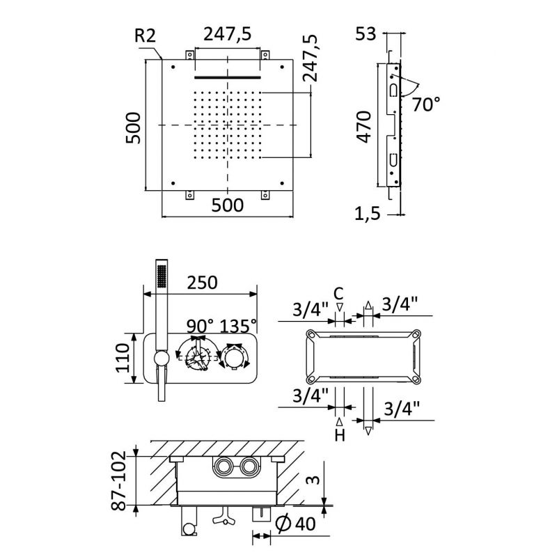 Bruma Genesi Термостатический душевой комплект с верхним душем (Дождь/Каскад) и ручным душем, Ночное небо Код товара: 191 788 1NS