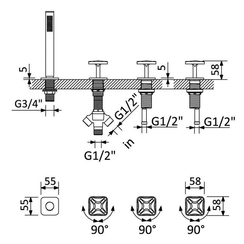 Врезной в бортик ванны |