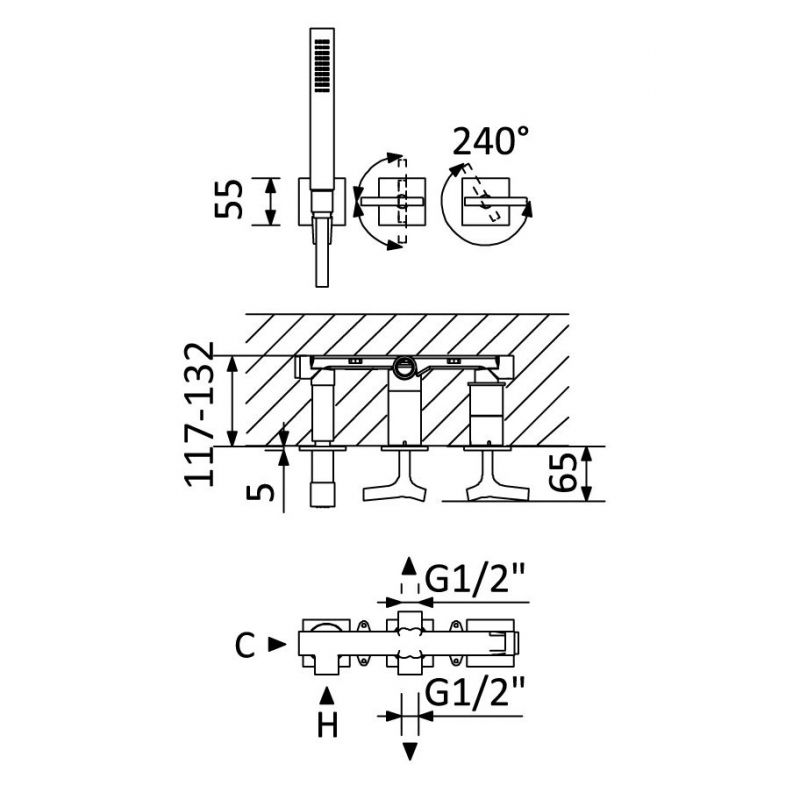 Bruma Royale Прогрессивный скрытый смеситель с 3 выходами и ручным душем Ночное небо Код товара: 192 143 1NS